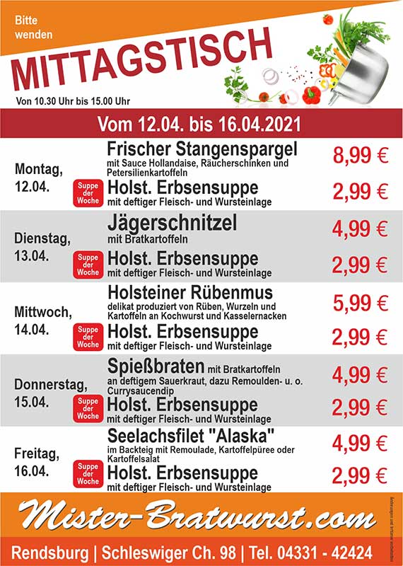 Wöchentlich wechselnder Mittagstisch zu günstigen Preisen! Genießen Sie unser Mittagsangebot mit täglich frischen, leckeren Gerichten.